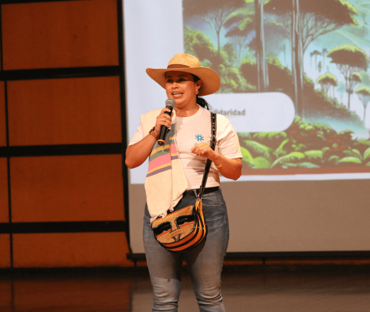 “Las mujeres del campo ya no usamos delantal: usamos micrófono, carriel y botas. Me han dicho ‘usted cómo hace eso, si es mujer’, pero eso me impulsa aún más. Yo no me dejo definir por esos límites”, afirma con determinación Valeria Ríos, joven agricultora colombiana.