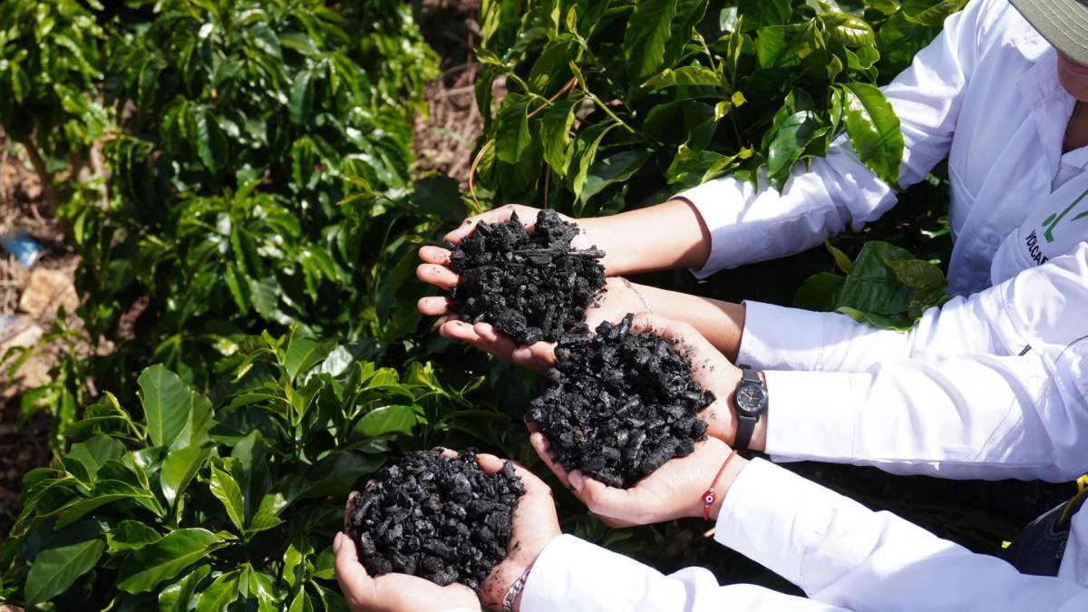 La primera fase consistió en capacitar a 20 técnicos de Volcafe en la transformación de biomasa residual (ramas, tallos y hojas de cafetales y árboles de sombra) en biocarbón, un material carbonizado que mejora la fertilidad del suelo y secuestra carbono.