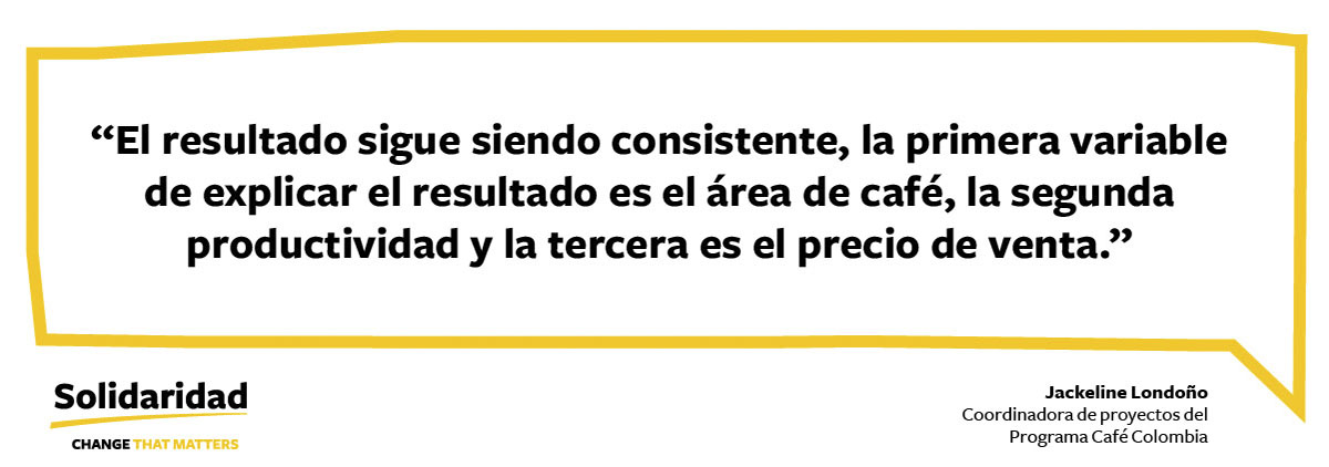 JL: El área de café es una variable que nos da poco o ningún margen de maniobra. Es por esto que es necesario indagar otras variables que pueden ayudar a mejorar el ingreso neto del agricultor. Estas no van a tener todo el impacto que tiene la productividad de café pero sí van a ayudar a cerrar la brecha entre el ingreso neto y el ingreso digno de una familia.