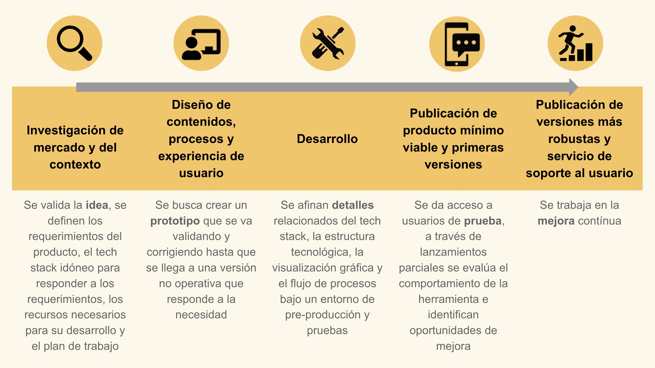 Luego de identificar una necesidad en el campo y considerar dar respuesta a la misma a través de la tecnología, se deben llevar a cabo varios pasos que incluyen: