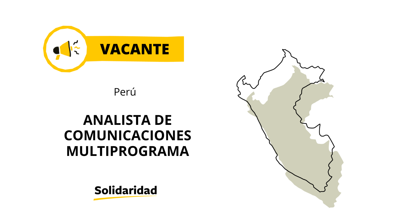 Si estás interesado/a en ser parte de este emocionante proyecto, envía tu CV al correo electrónico camila.garridolecca@solidaridadnetwork.org, mariagracia.chumpitaz@solidaridadnetwork.org y rrhhperu@solidaridadnetwork.org, con el asunto VACANTE – ANALISTA DE COMUNICACIONES MULTIPROGRAMA, recuerda incluir tu portafolio. ¡Te esperamos hasta el 18 de julio!